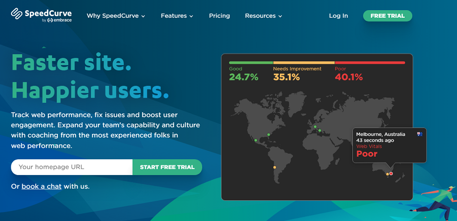 SpeedCurve is a web performance tool that blends real user monitoring (RUM) and synthetic testing. It offers a user-friendly dashboard to track Core Web Vitals, like LCP, FCP, CLS, and INP, along with load times.