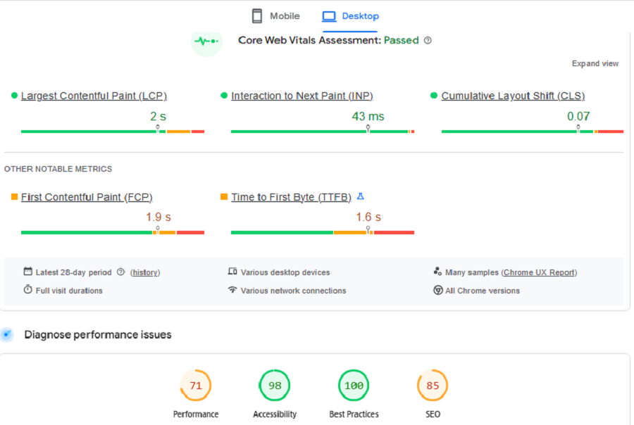 It’s great for quick audits of load times and Core Web Vitals, like LCP, FCP, CLS, and INP. More importantly, it offers actionable tips to help you fix your website to have better speed performance. This is great for beginners and small business owners who don’t have a professional developer and SEO team.