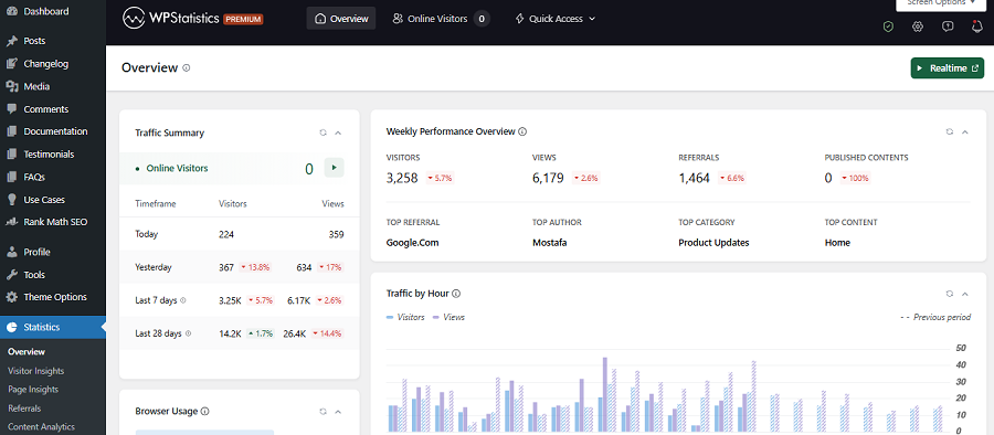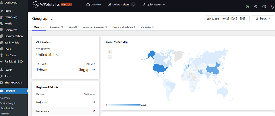 Tools like WP Statistics allow you to monitor your visitors in real time without switching your dashboard.