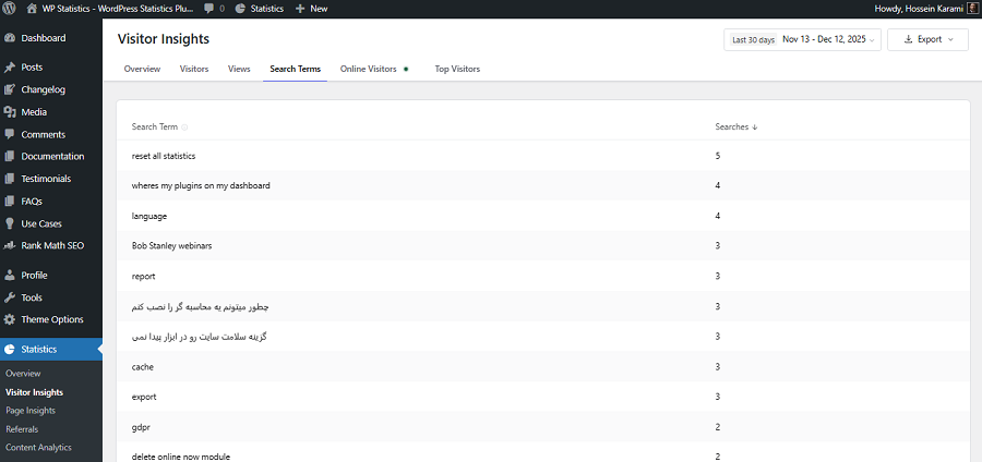 Internal search terms on WP Statistics